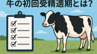牛の初回受精適期を最新の研究と現場データで徹底解説。経産牛は分娩後60日、初産牛は80日、育成牛は13〜16か月が目安。VWP設定・発情発見・授精タイミングの実践チェックリスト付きで現場ですぐ使えます。