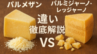 パルメザンとパルミジャーノ・レッジャーノの違いを産地・原料・製法・熟成・味で比較。本物の見分け方、保存法、料理別の使い分けやおすすめレシピまで丁寧に解説します。
