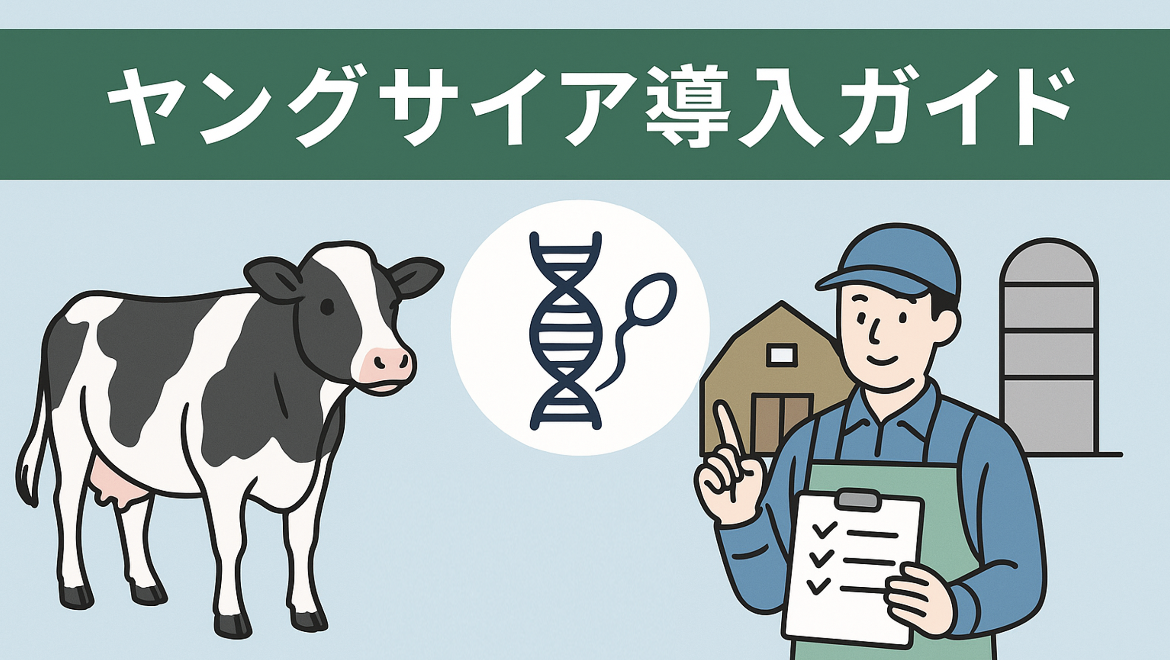 ヤングサイアとは何かを初心者向けにわかりやすく解説。ゲノミック評価による選抜方法・導入手順、コスト試算、近交対策、実践チェックリスト、1年モデルまで実務目線で丁寧にまとめています。