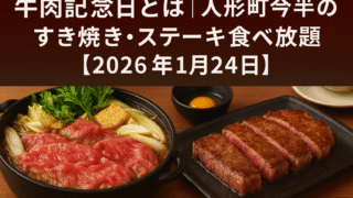 牛肉記念日(1月24日)の歴史と、人形町今半のすき焼き・ステーキ食べ放題(抽選予約)の最新情報、応募手順・当落・キャンセル規定、参加のコツまでやさしく解説。
