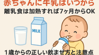 赤ちゃんに牛乳はいつから?厚生労働省指針に基づき解説。離乳食での加熱利用は7ヶ月、飲み物は1歳からが目安です。アレルギーや鉄分不足を防ぐ正しい飲ませ方、スーパーで役立つ「安全な牛乳の選び方」を初心者向けにまとめました。