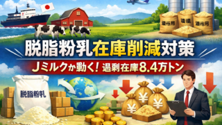 農水省が令和8年度に加工原料乳補給金を強化。単価合計12.03円/kg、実質350万トンに拡大。申請期限・牧場別影響試算、手続きチェックリストを図解で解説。