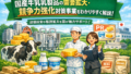 農林水産省は、令和8年度(2026年度)の畜産・酪農対策として、加工原料乳生産者補給金等の支援強化を決定しました。補給金と集送乳調整金、ALIC関連対策を合わせた合計単価は1kg当たり12.03円となり、実質的な支援対象数量は350万トン(基本325万トン+関連対策)に拡大します。本記事では、決定内容の要点、牧場規模別の影響試算、申請に必要な手続き(年間販売計画の提出期限は2026年2月27日)を分かりやすく解説します。