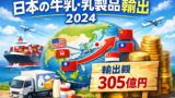 世界の乳製品貿易は粉乳やチーズを中心に回っており、2024年もニュージーランドが輸出額でトップを維持しました。本記事では「世界の牛乳・乳製品輸出ランキング(2024)」を製品別・国別に図表で整理し、ニュージーランド、EU、米国それぞれの強みと日本への影響、今後の見通しまで酪農家が解説します。出典データ(WITS/USDA/OEC等)に基づき、日本の酪農・流通関係者と一般消費者の双方に役立つ情報を提供します。